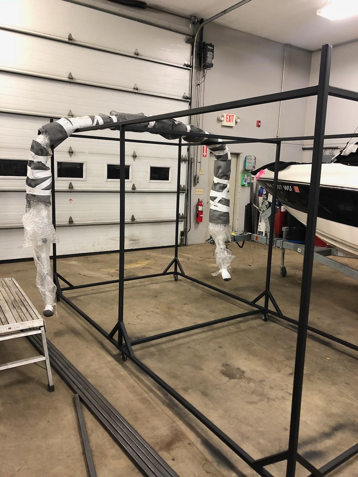 01-15-19 One of the Winnisquam Marine tech’s, Bobby, welds up a couple Bennington bimini racks to take real good care of all those heavy duty bimini going on our new Bennington Pontoon Boats