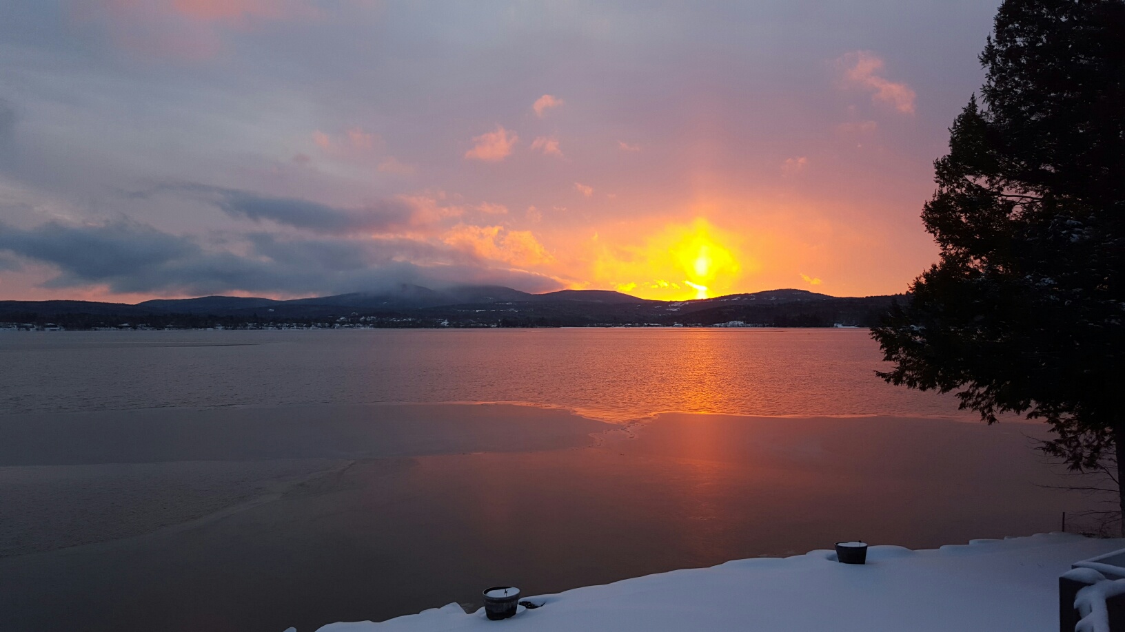 02-09-16 19F After you look at this awesome sunrise over Lake Winnisquam, get out and vote in the NH primary, if you can of course! Winnisquam Marine is currently transporting 29 boats down to the BCEC in Boston for the New England Boat Show Feb 13-21, 2016. Be sure to come see us. We have our most impressive display od Benninton Pontoon Boats and Crownline Boats- EVER !!! Don’t miss the boat……