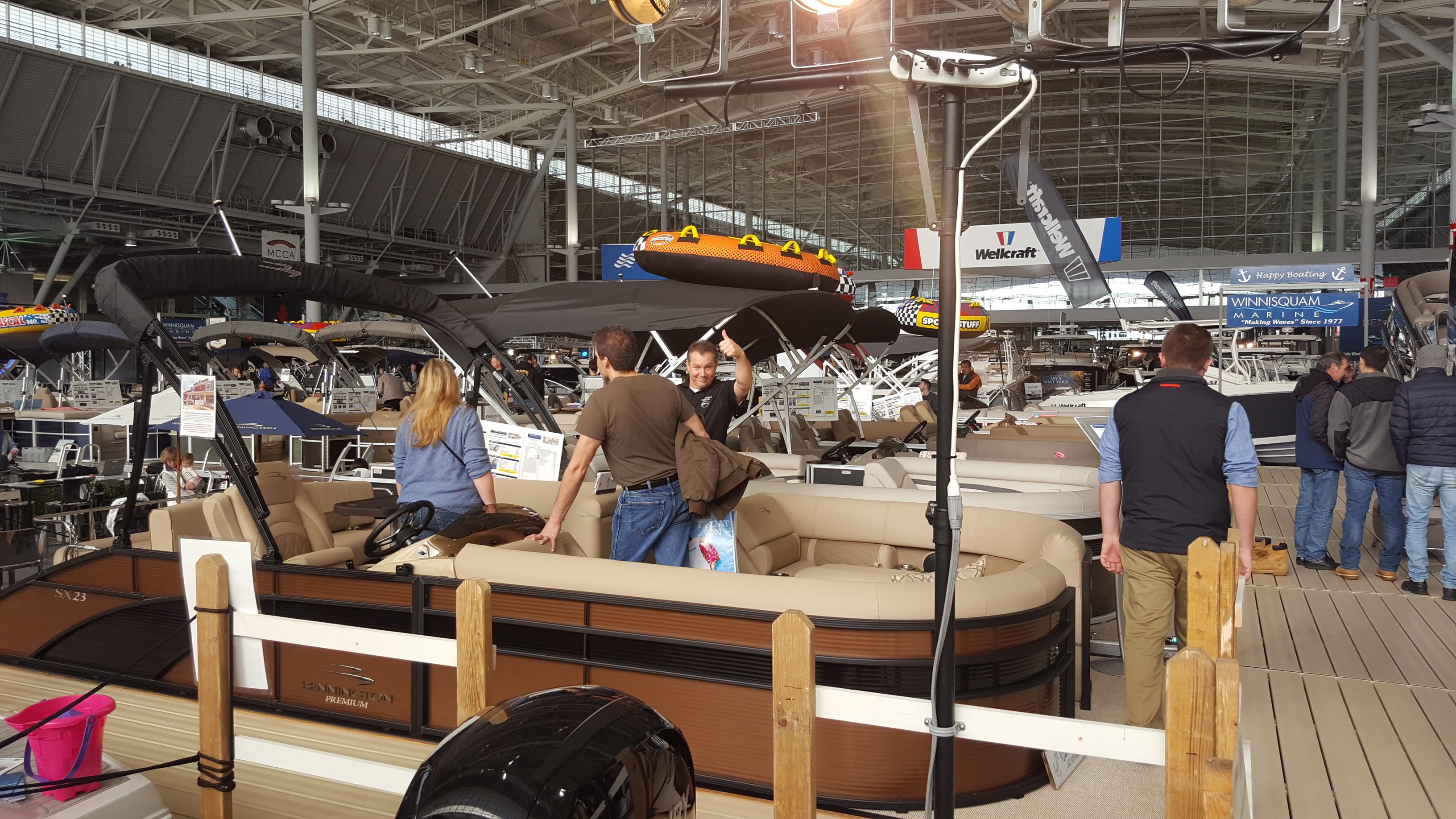 02-18-18 Mark works feverishly showing off his “fire cracker special” Bennington Pontoon Boat color. Mark says this is the most interesting new color in the lineup !!