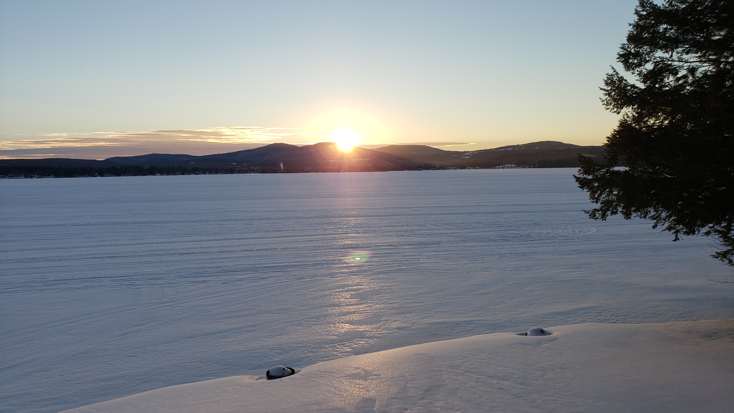 03-13-19 Suns up over Lake Winnisquam! The lake has been perfect for riding. Cold weather, flat snow pack and loose snow on top.