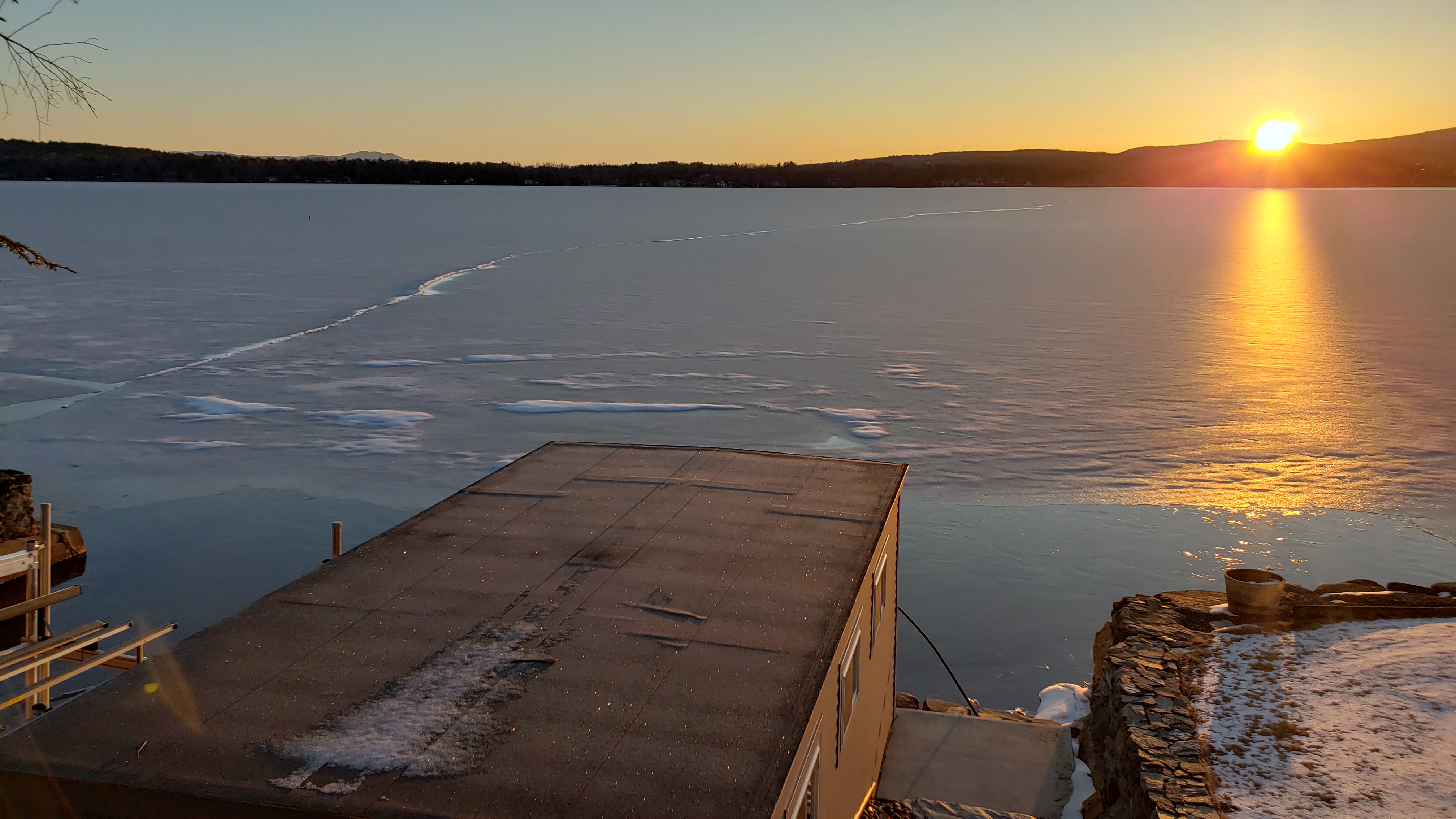 04-11-19 6:24 am Awesome sunrise today. Winnisquam actually made ice earlier this week. No global warming here !!!