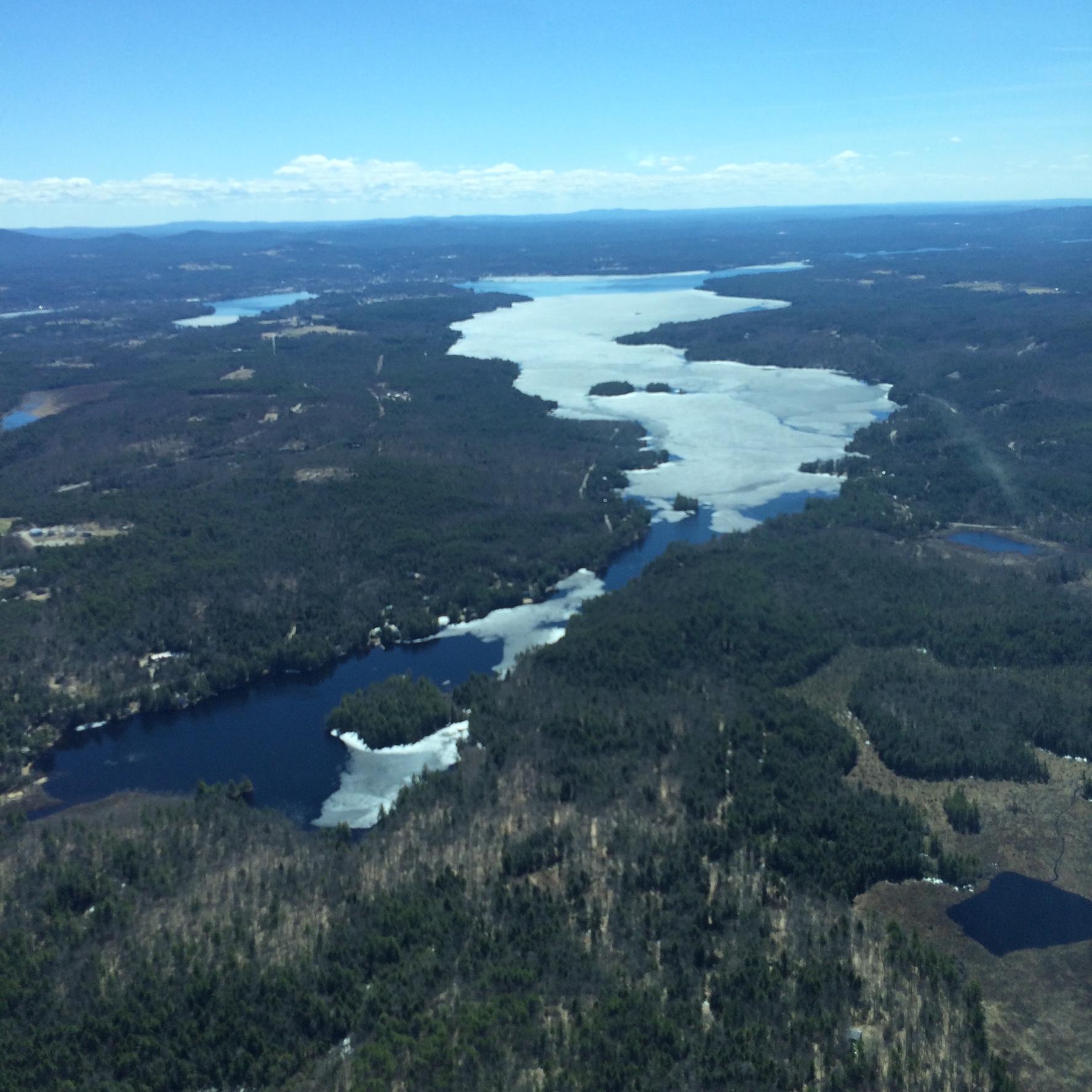 Here’s a shot from the North looking South. You can see the very north end of Winnisquam is opening up from the river inlet flow. The Loon Sanctuary still has ice. After the slow channel you can see Loon Island, then Three Islands and finally Pot Island as a speck in the ice. All the blue is open water. Free floating ice has piled up on the shore below the Belknap Mall shoreline. Â Opechee Lake is to the left of Winnisquam. A couple more days and it will all be over for Mr. Ice !!!! Click to enlarge this picture. Thanks to Ryan Stewart for the photo. Anytime you take a picture, we’ll post it!