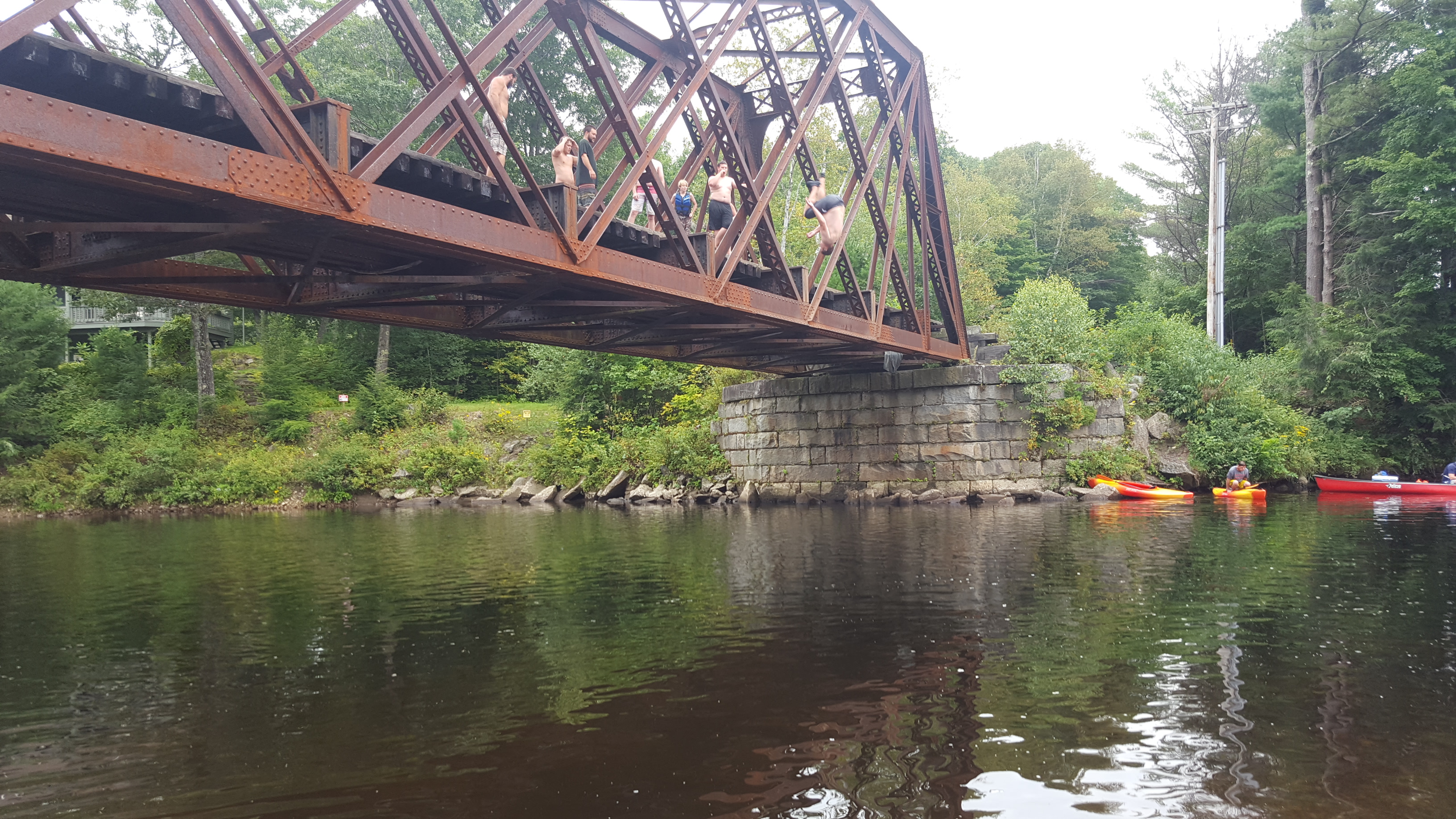 09-05-17 Evan shows the crew a Kiss A$$ Blaster. That’s a twisting Triple off the railroad trestle.