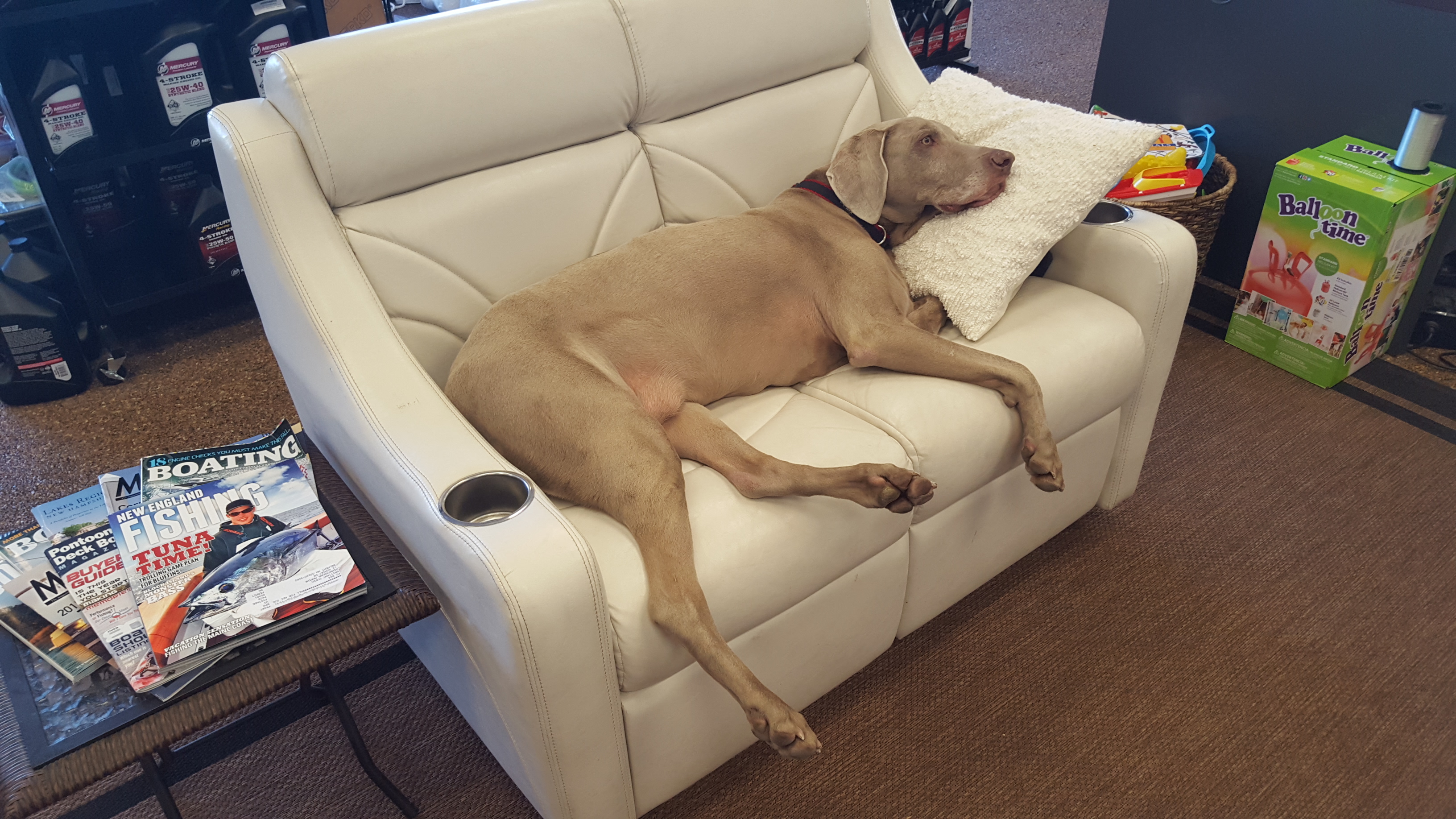 09-10-16 WHEW !!! Dukes had it. Too many boats sold on Saturday, he’s pooped… Time for a rest, could you move over a little?