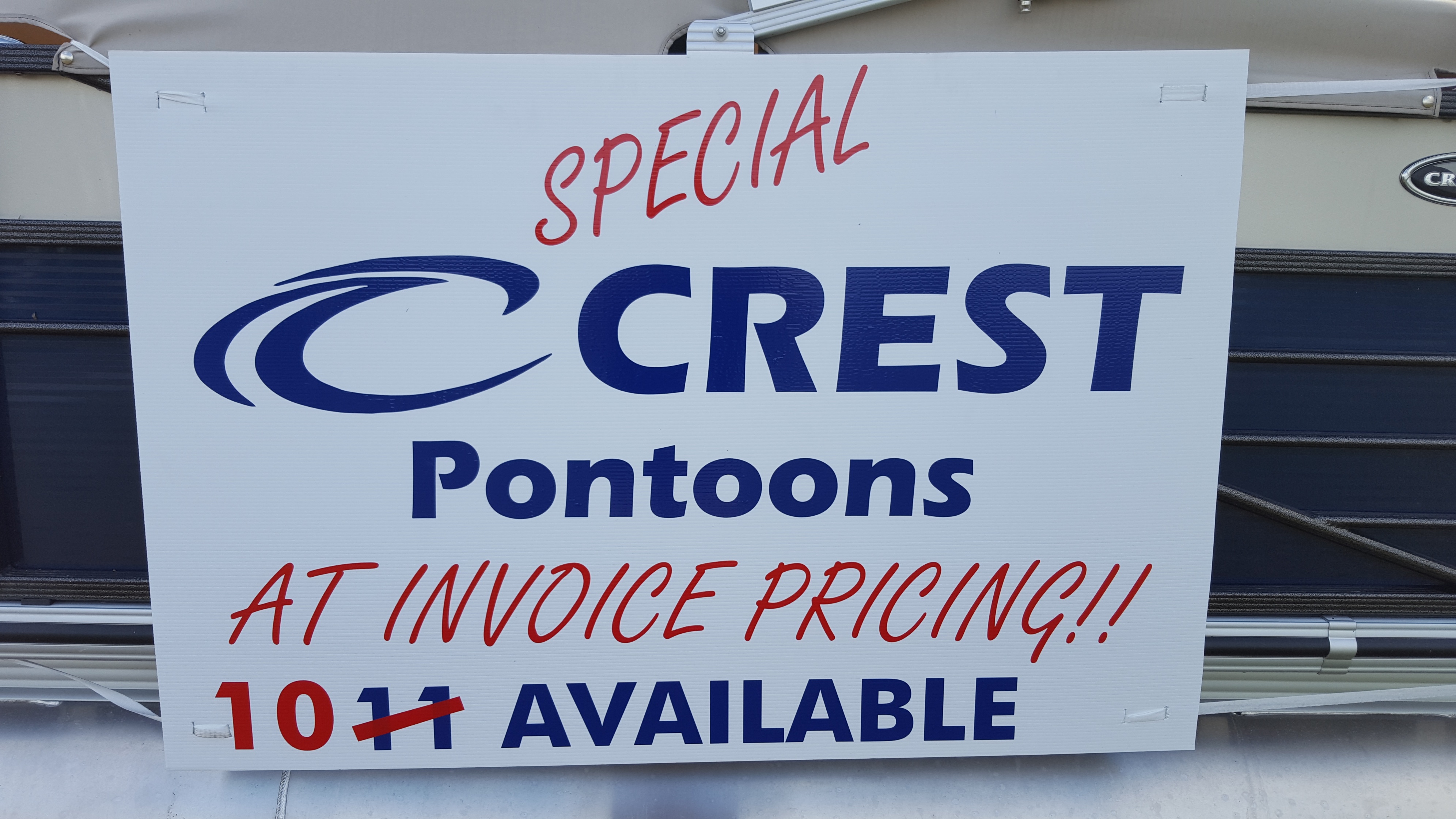 10-08-17 Don’t miss the boat on the 10 remaining Crest Pontoon Boats. Last Chance !!! Why pay Retail when you can get these 10 at Invoice Pricing?