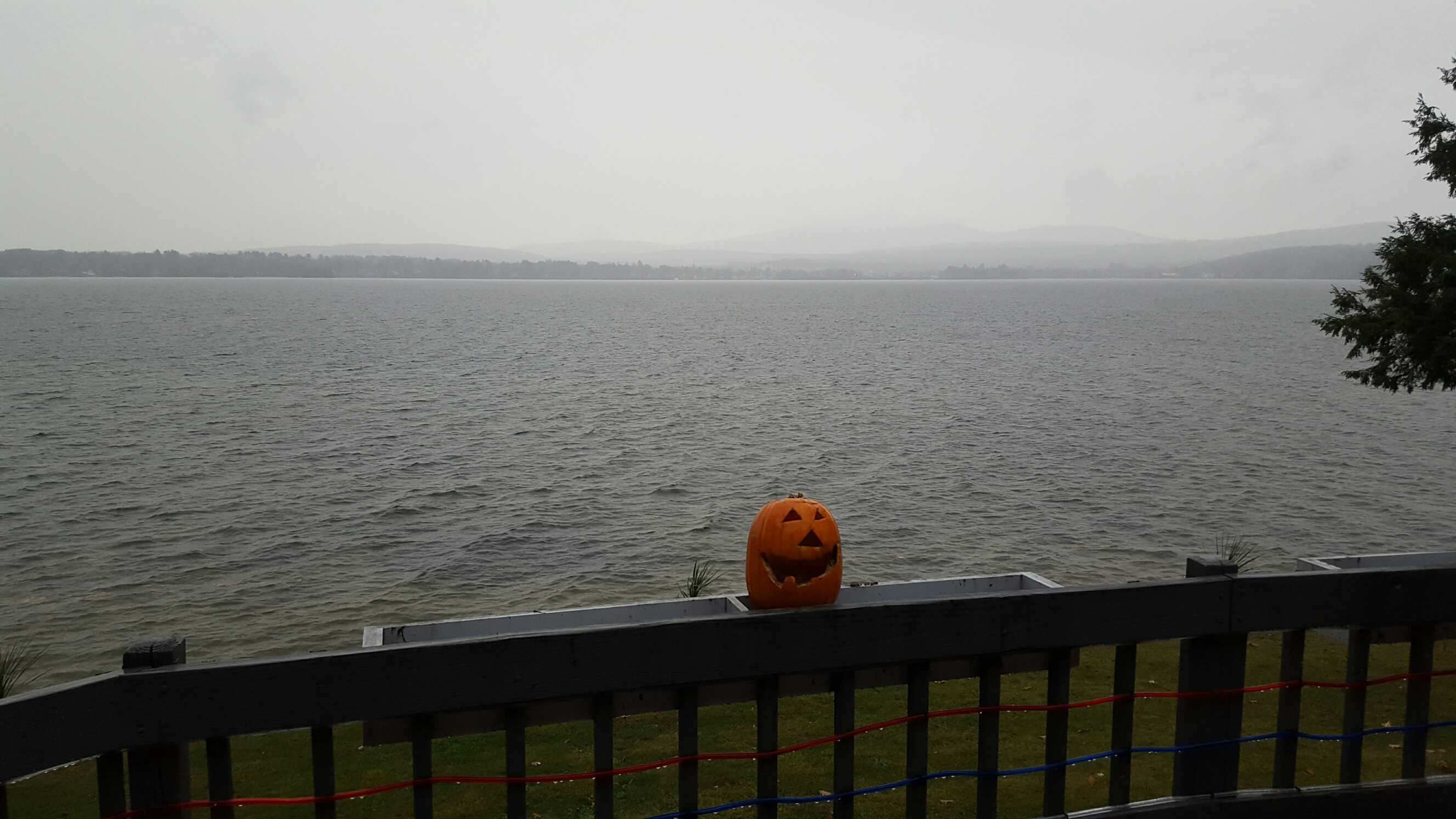 Our first real lousy, dreary day this fall. The weather has been great this year really since the July 4th holiday! The lake temp just hit 50F, that’s the lowest it’s been this fall. Check it out on our Webcam page, scroll down and look at the, “2nd Temp (F)”. That will be relabeled, “Lakewater Temp” soon. Our thermistor is down 2 feet in the lake, it’s in the shade and the area will be circulated all winter so the readings will be available year round. Our Davis Vantage Pro is transmitting and updating every 5 minutes from the remote dock station up to our main station up on our roof. Then it’s retransmitted down to our  Davis console inside all wirelessly. Please enjoy…