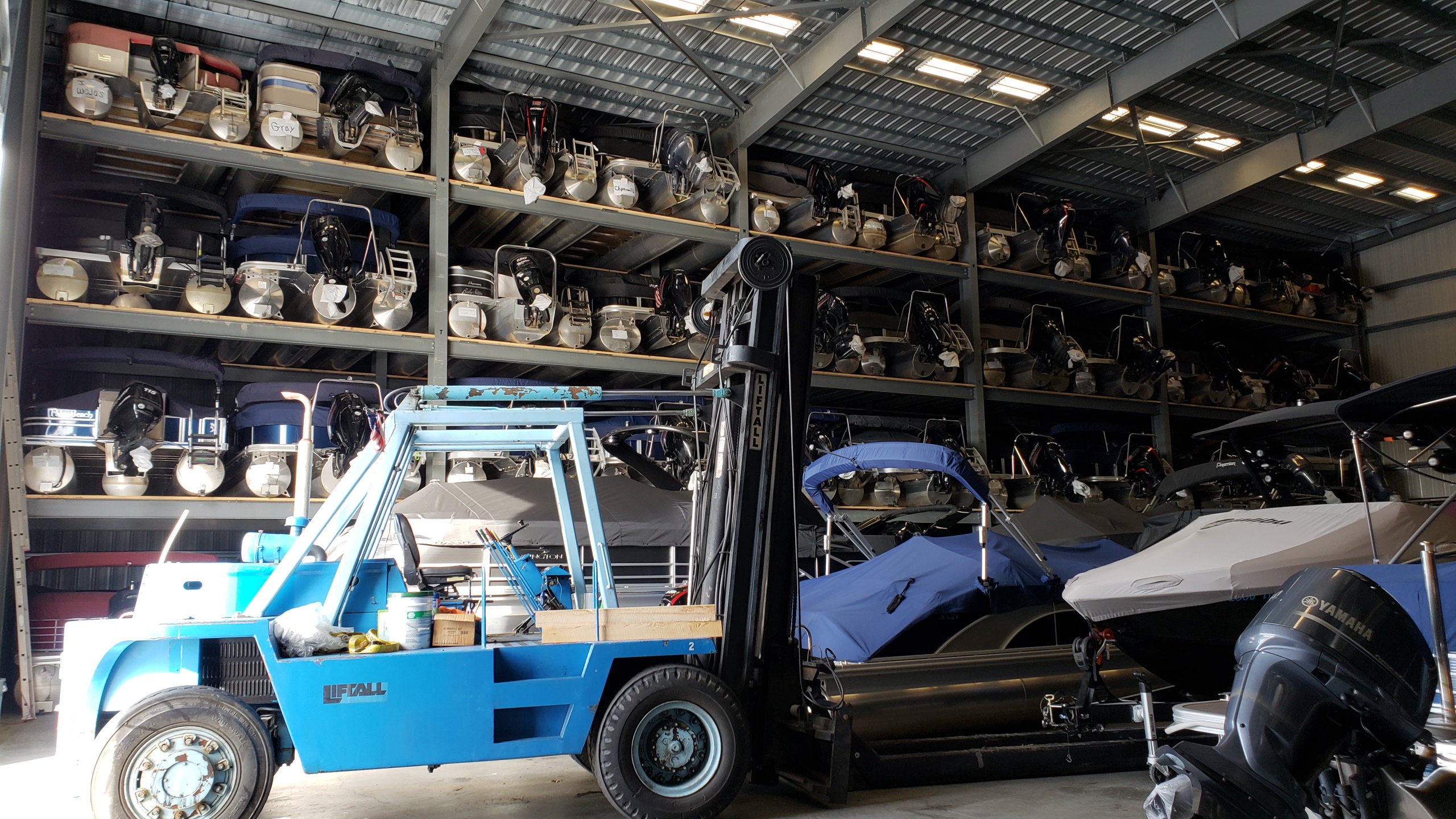 11-24-18 Red Alert !! This building is full. In fact- all the buildings are full !!! We’re wrapping our rentals and used boats for the winter. We’ll do them in clear wrap with a door for better access when we have a sale.