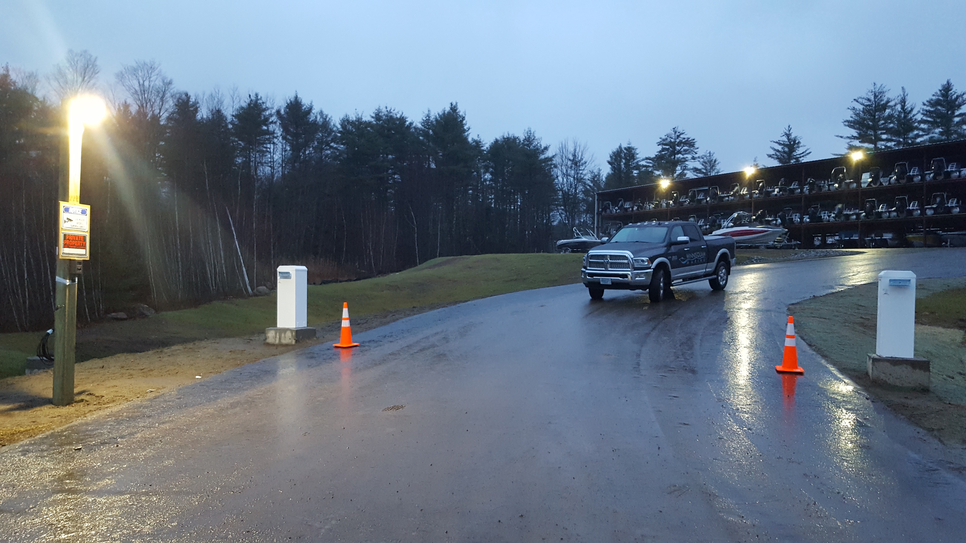 12-05-17 Hey Winnisquam Marine has their own lightpost for the entryway to the new Rt 106 Boat Storage facility AND we almost have our new entry gates.