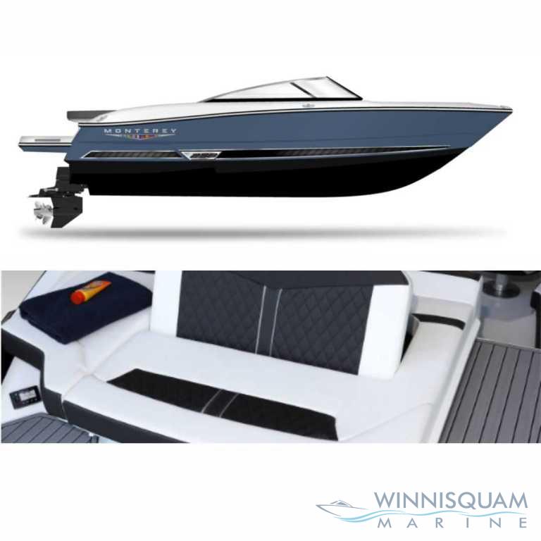 The popular Monterey 238 SS in the NEW Mediterranean Blue with Onyx Bottom. Well-Equipped with dual battery's, bow filler cushions, dual Simrad NSX-7's, wireless charging and so much more!