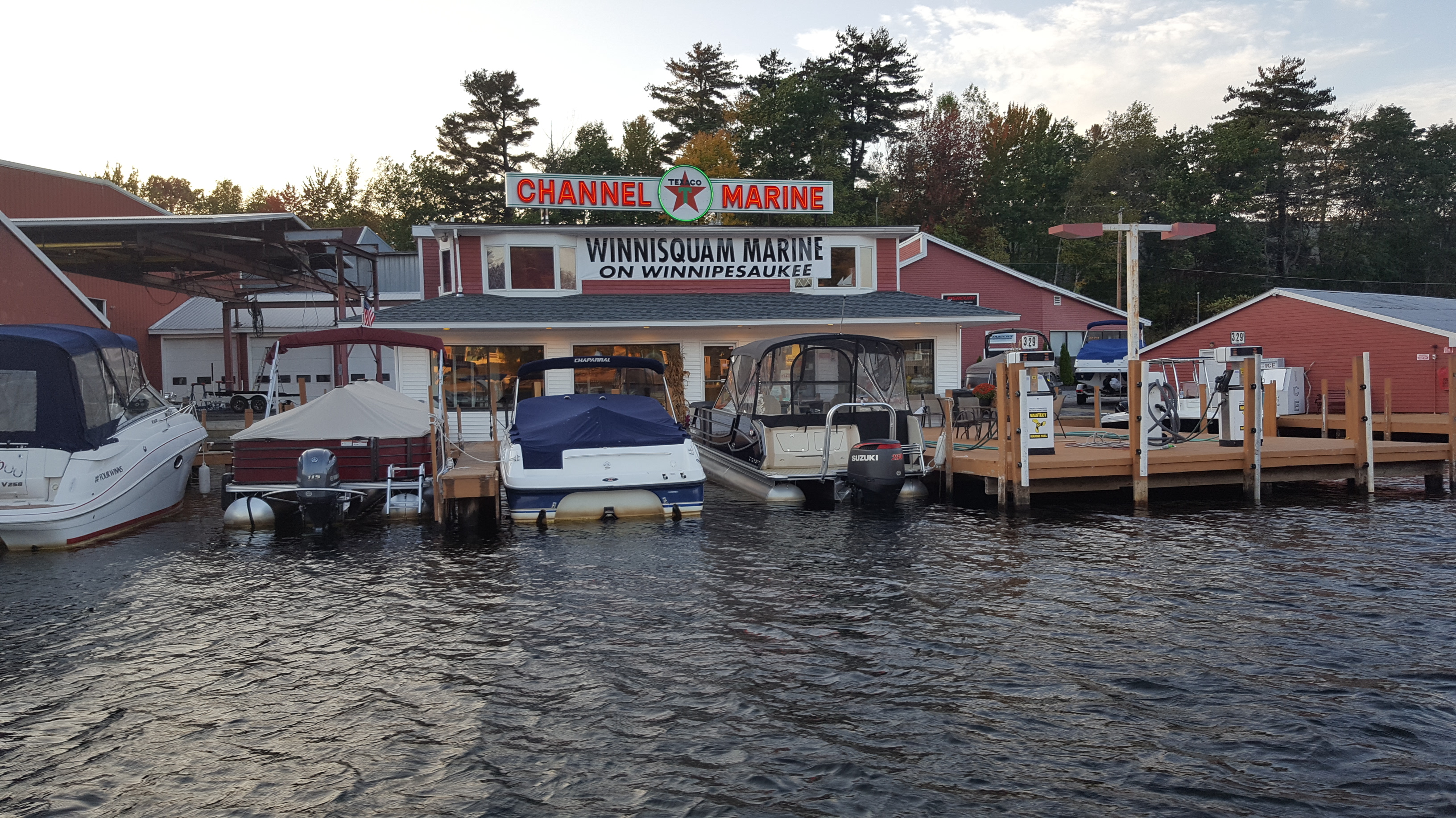 Looking Good from out in the channel. The new Winnisquam Marine on Winnipesaukee