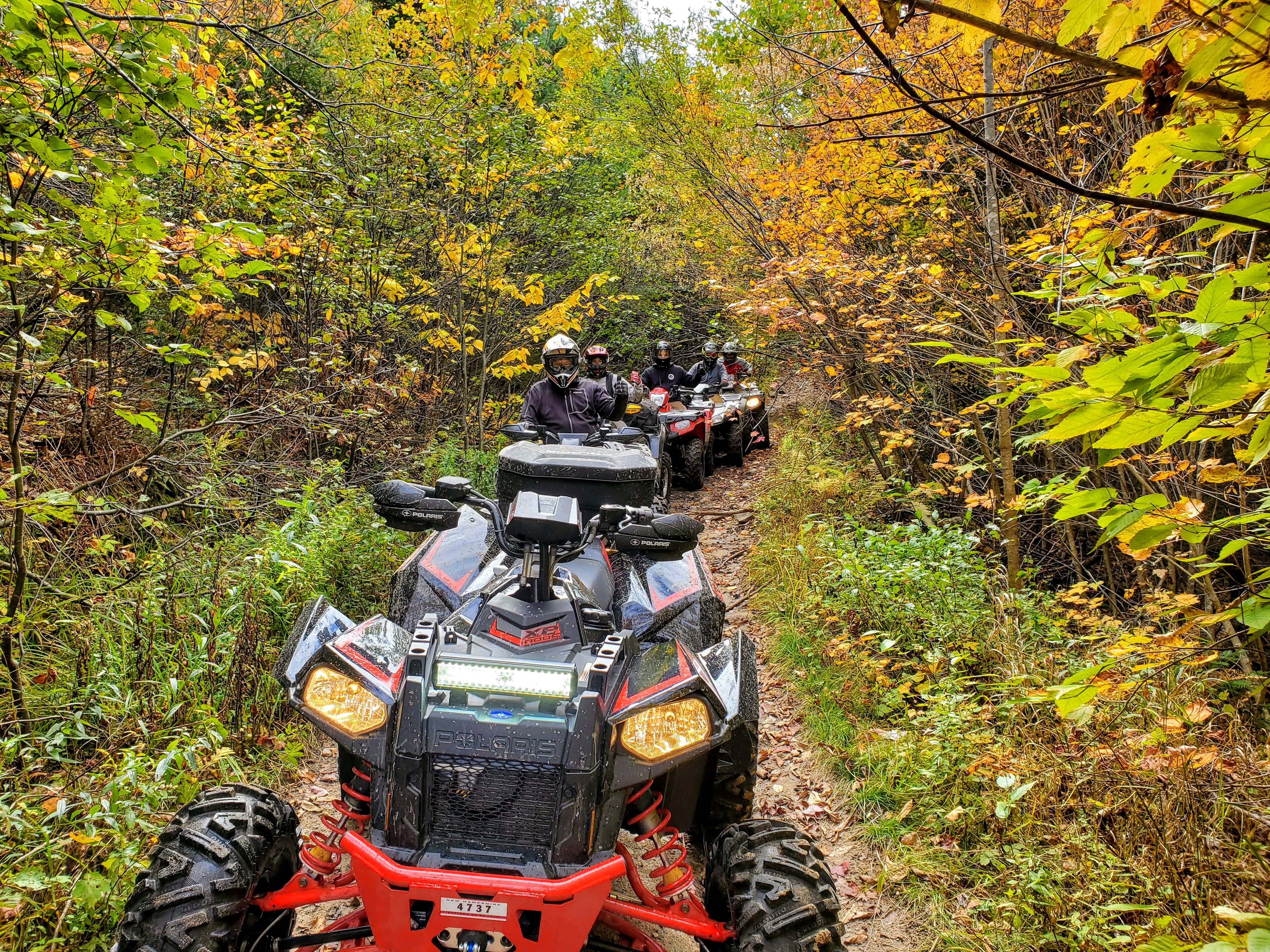 Here’s Ryan, Max, Marty, Evan and Mark (Ed too) enjoying the foliage (and steep banks) up at the Strafford Trails in Northern NH. There are 1000 miles of interconnected ATV trails in NH.