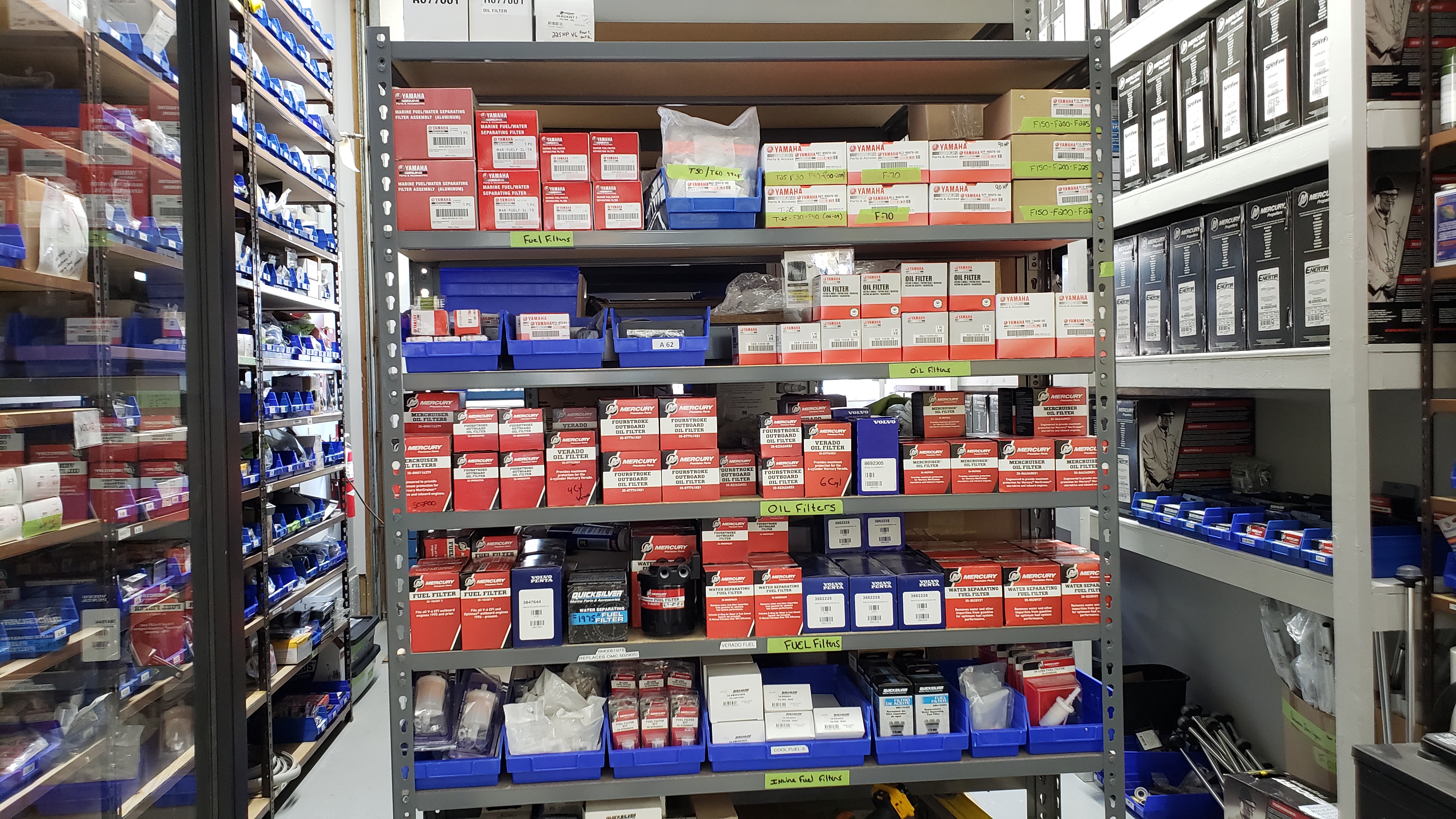 The new Winnisquam Marine Parts Room is looking GREAT !! Joe now has all his inventory down on the main floor. The Techs will be able to access parts pronto now!